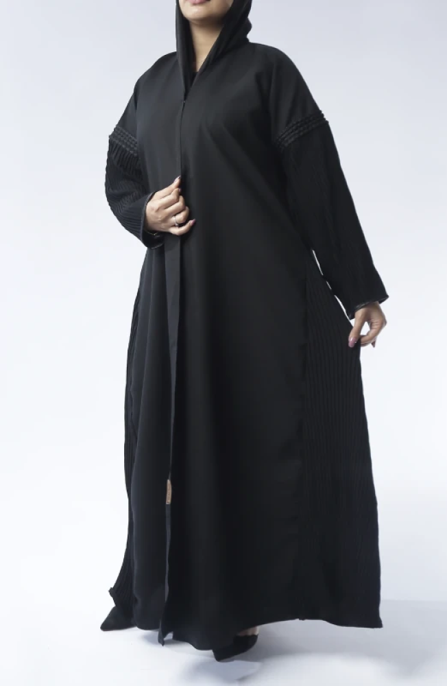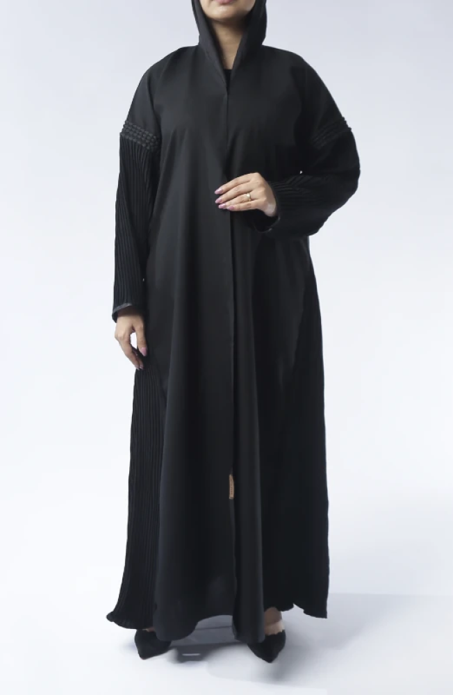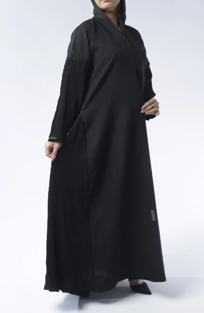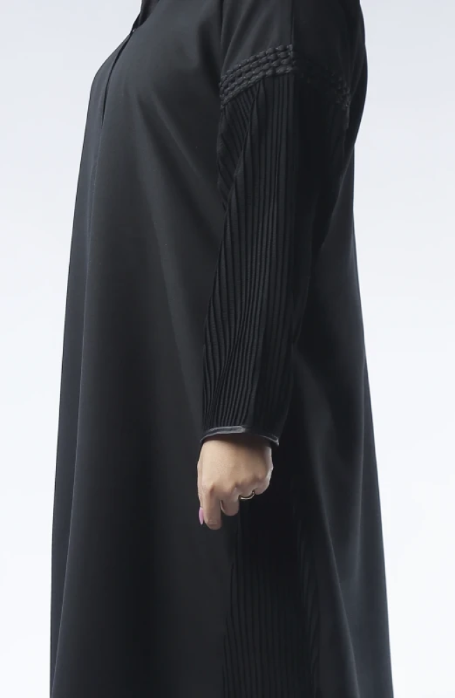 استعدي للإبهار مع عبايتنا الراقية التي تأتي بقماش ميني مات، وهو نوع فريد من الأقمشة المتألقة بنمط مطبوع متنوع يحتوي على نقوش ورسومات متوسطة اللمعة. تتميز هذه العباية بتصميم أكتاف مطرزة وجمال القماش بيليسيه الذي يظهر بكسرات طولية متناسقة تمتد من الكتفين وحتى الأكمام، مع تفاصيل جانبية أنيقة من نفس القماش. تتناغم هذه العباية مع إطلالتك اليومية للعمل أو الخروجات، مضيفة لمسة من الأناقة والجمال الأنثوي على شخصيتك