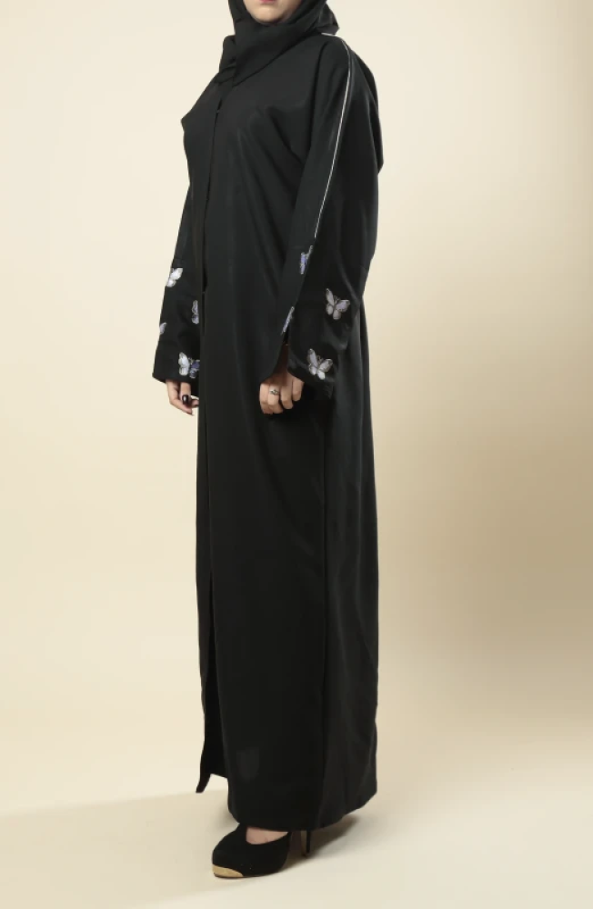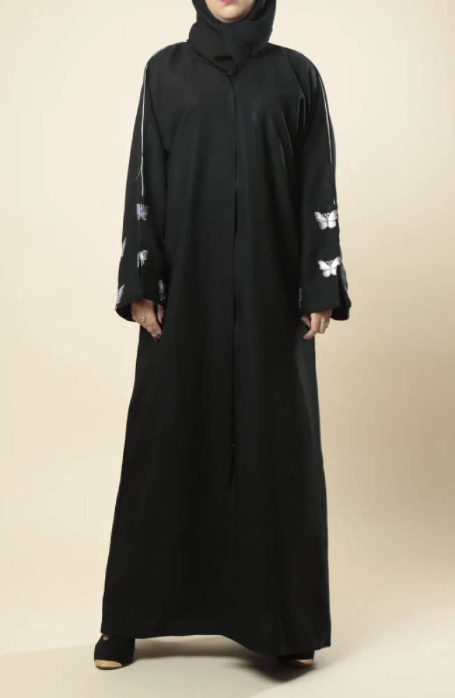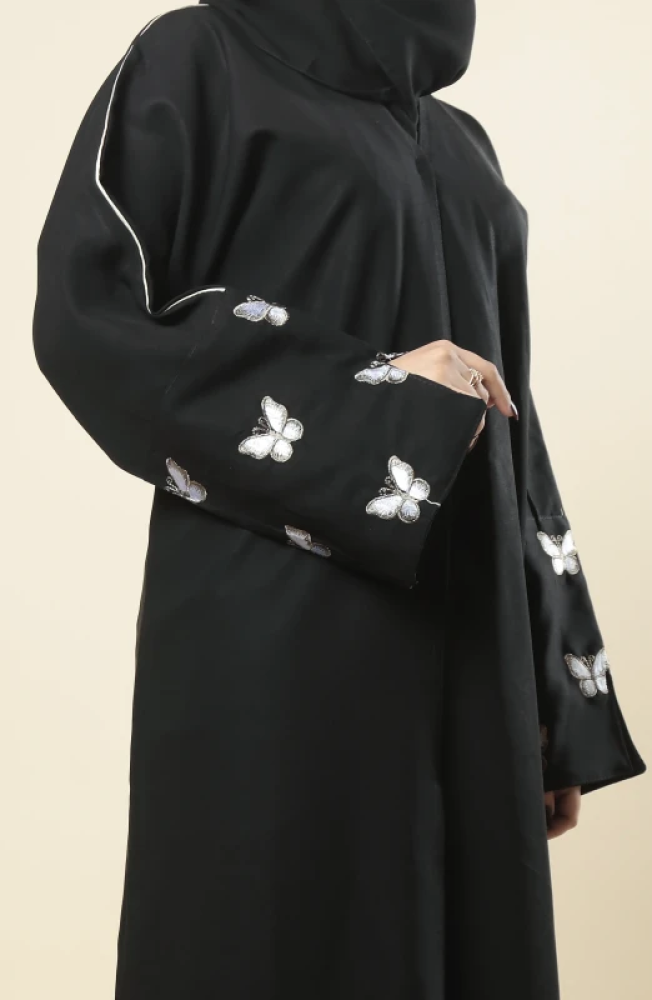 تتميز العباية بقماش (ميني مات) وهو نوع من الأقمشة المتميزه بنمط مطبوع عليه نقوش ورسومات متنوعه متوسطة اللمعة. وتتميز العباية بخيوط ملونة مطرزه على شكلوخروجاتكلؤلؤية ساحره. هذه العبايه هي إختيارك الأنسب وقت العمل وخروجاتك اليومية