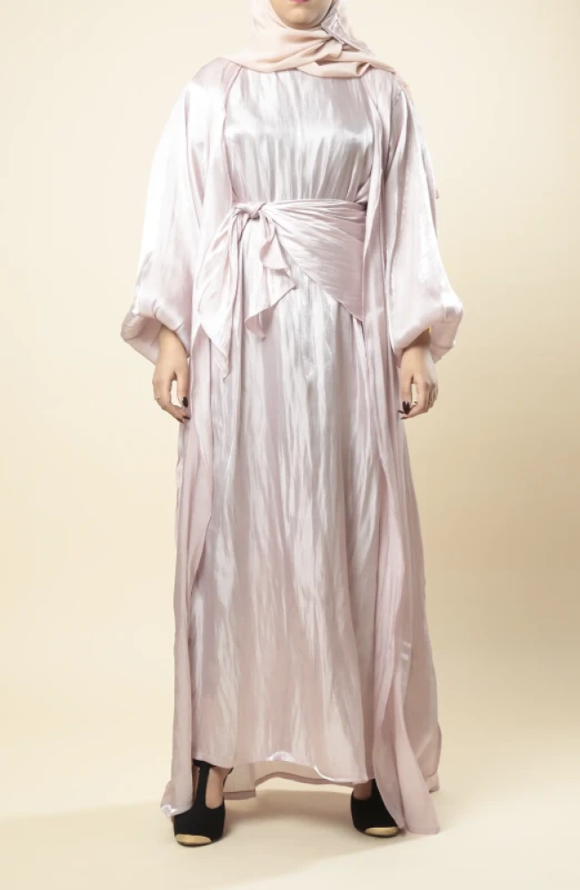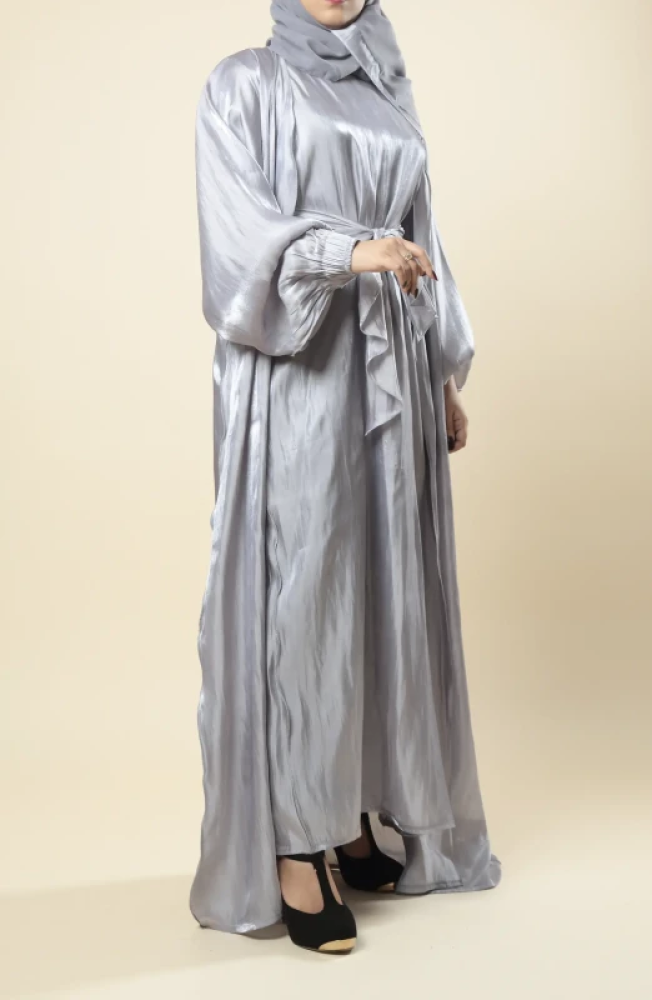تتميز العباية بقماشها الحرير المصنوع من الألياف الطبيعيه المستخرجة من يرقات اليرس التي تنتج الحرير والذي يتميز بنعومته الفائقه على البشرة. تتميز هذه العباية بقصة أكمام مزمومه معاصرة لصيحات الموضة. متوفرة بعدة ألوان باردة مناسبة لفصل الصيف